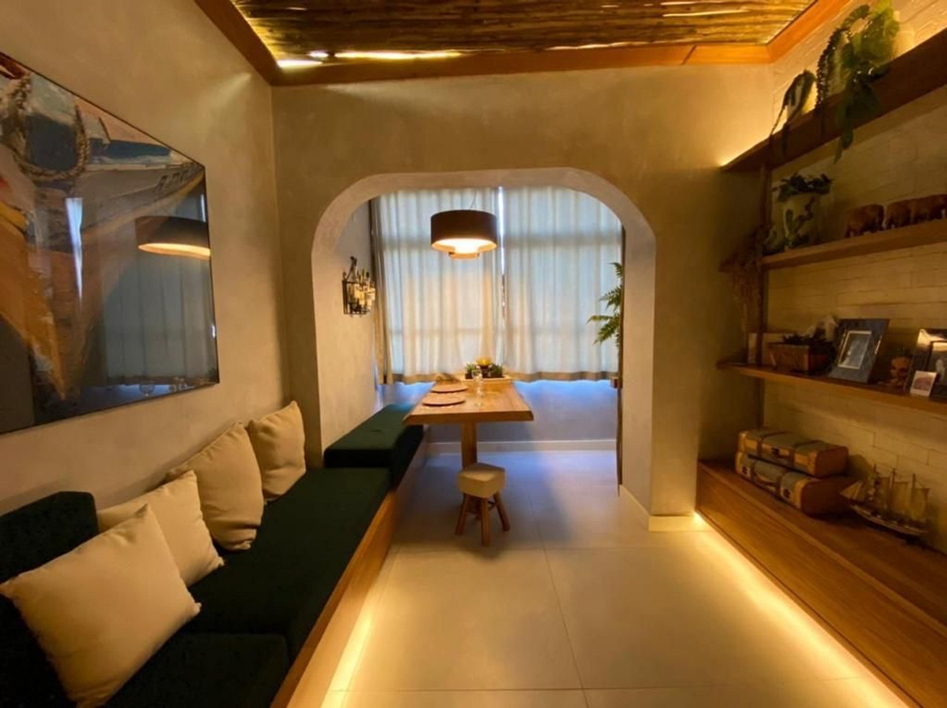 Apartamento com design sofisticado e aconchegante, decoração moderna com iluminação indireta e elementos naturais. Sala integrada à cozinha equipada. Dois quartos confortáveis, com camas espaçosas, marcenaria planejada e armários amplos. Conta com roupa de cama inclusa, máquina de lavar roupas, utensílios de cozinha e vista para o mar. Localizado em andar térreo. Não possui estacionamento.