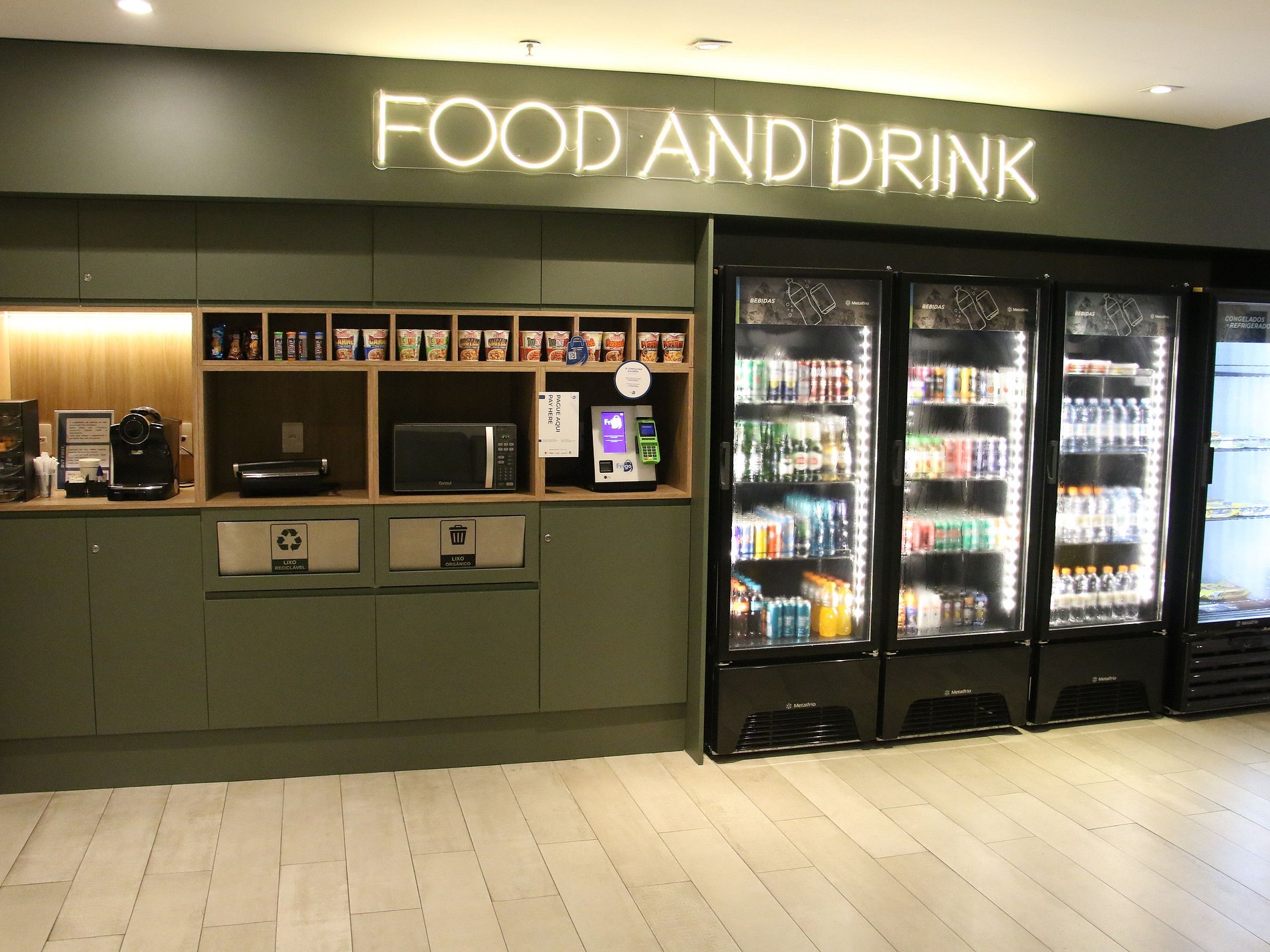 -No hall de entrada, você encontrará: Mini mercado com produtos e bebidas.